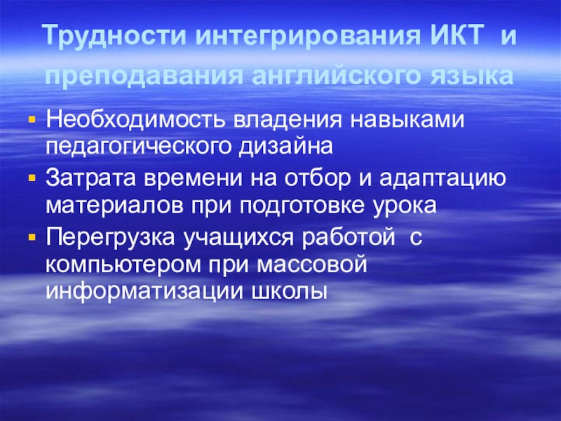 Слайд 24Трудности интегрирования ИКТ и преподавания английского языка