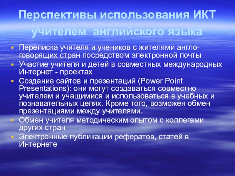 Слайд 25Перспективы использования ИКТ учителем английского языка