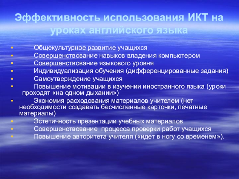 Слайд 23Эффективность использования ИКТ на уроках английского языка