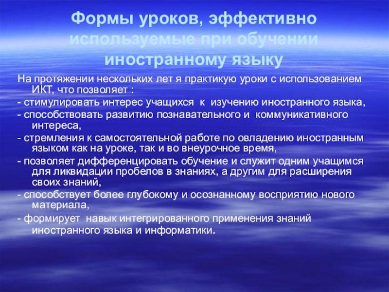Слайд 10Формы уроков, эффективно используемые при обучении иностранному языку
