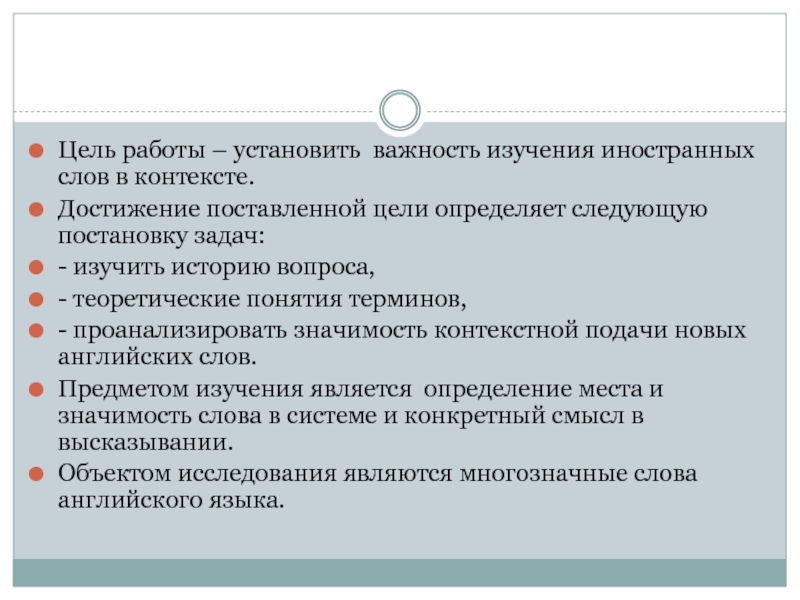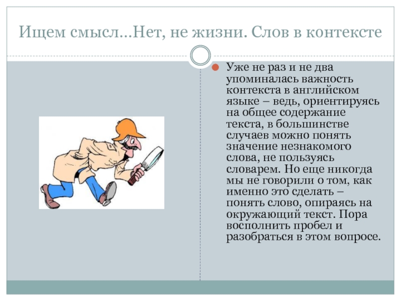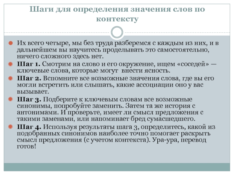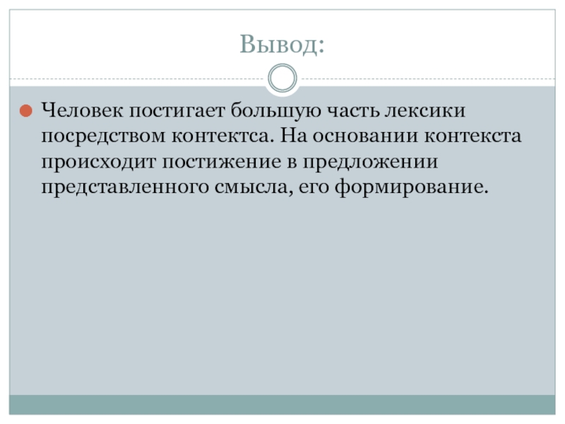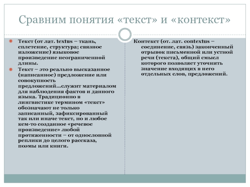 Контекст (от. лат. contextus – соединение, связь) законченный отрывок письменной или устной речи (текста), общий смысл которого позволяет уточнить значение входящих в него отдельных слов, предложений.