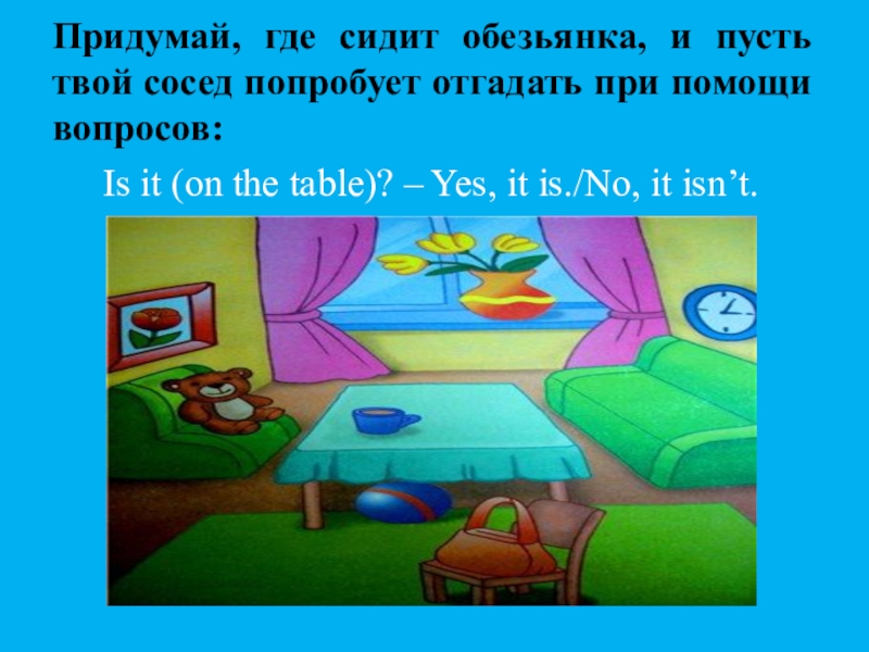Is it (on the table)? – Yes, it is./No, it isn’t.