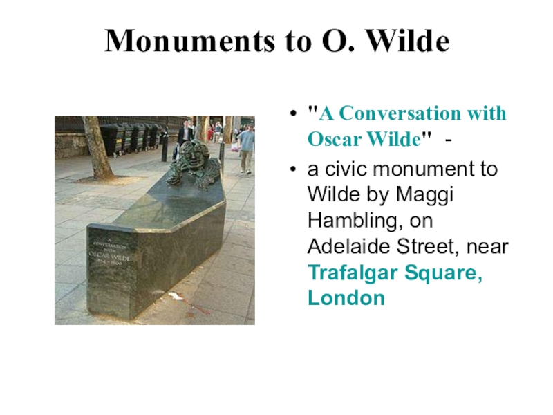 monument to Wilde by Maggi Hambling, on Adelaide Street, near Trafalgar Square, London
