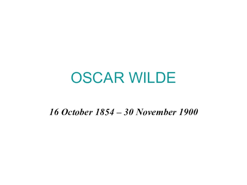 OSCAR WILDE16 October 1854 – 30 November 1900