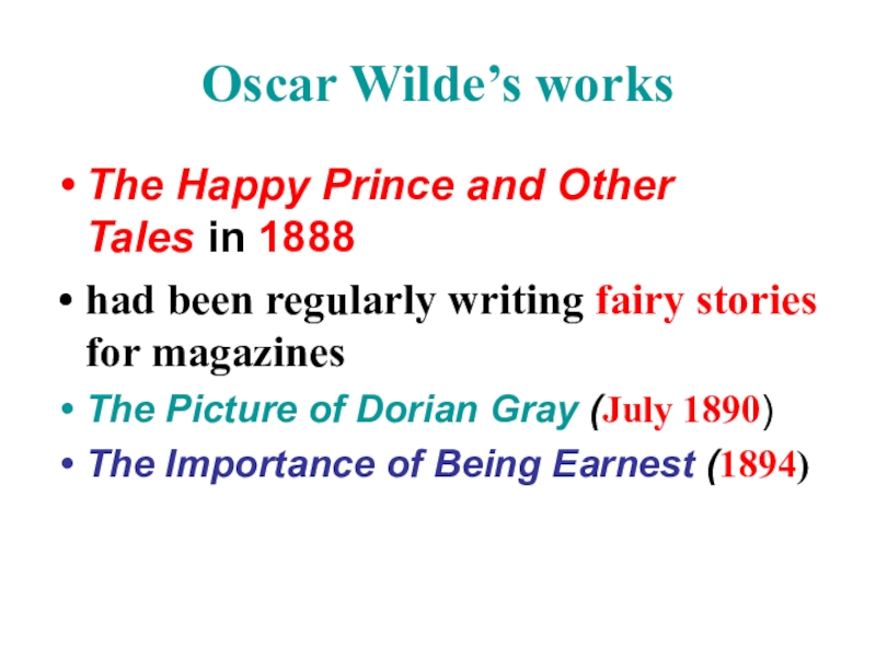 Oscar Wilde’s worksThe Happy Prince and Other Tales in 1888 had been regularly writing fairy stories for magazines