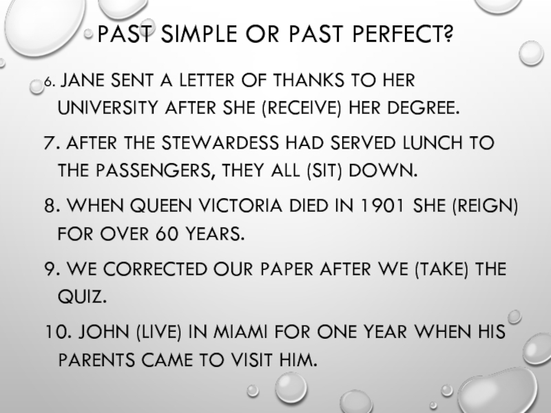 Jane sent a letter of thanks to her university after she (receive) her degree.