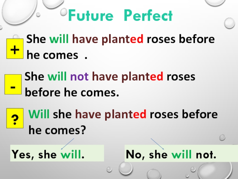 willhaveplantedwill nothaveplanted she have planted roses before he comes?willwill