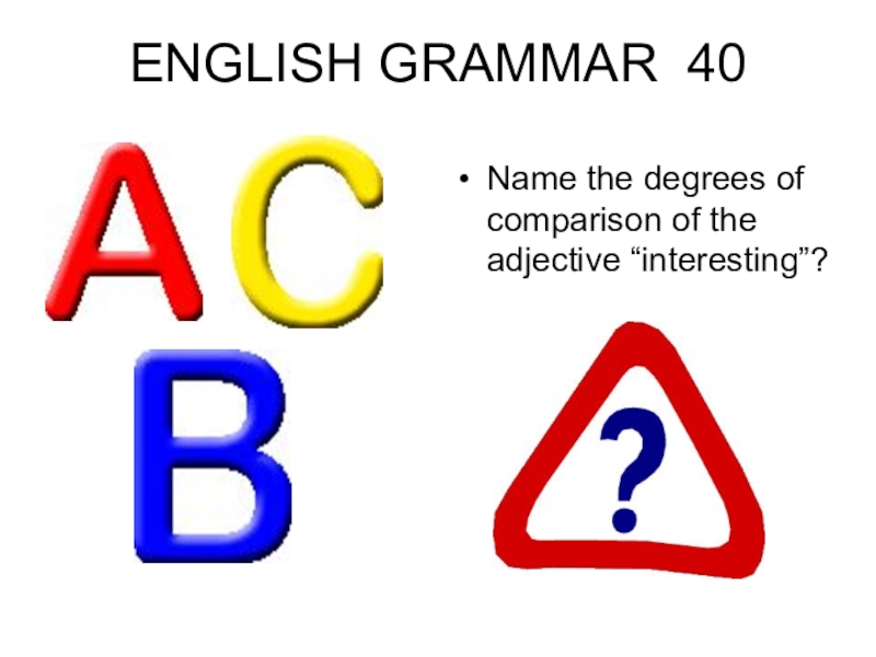 ENGLISH GRAMMAR 40Name the degrees of comparison of the adjective “interesting”?