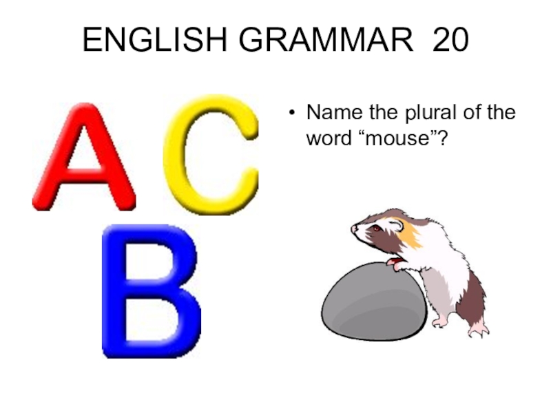 ENGLISH GRAMMAR 20Name the plural of the word “mouse”?