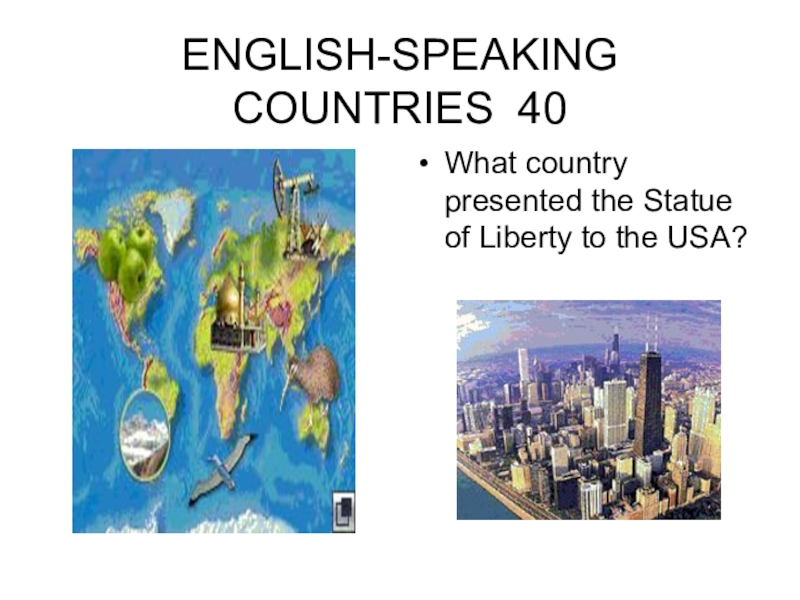 ENGLISH-SPEAKING COUNTRIES 40What country presented the Statue of Liberty to the USA?