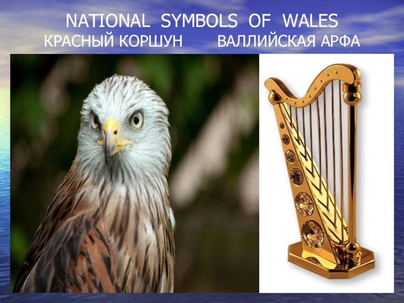 Слайд 41NATIONAL SYMBOLS OF WALES КРАСНЫЙ КОРШУН ВАЛЛИЙСКАЯ АРФА