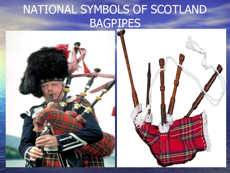 Слайд 29NATIONAL SYMBOLS OF SCOTLAND BAGPIPES