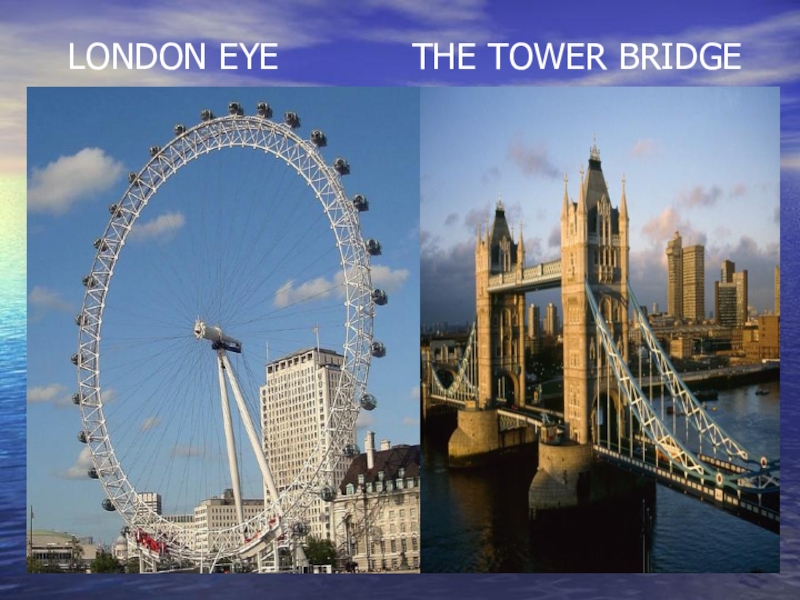 Слайд 11 LONDON EYE THE TOWER BRIDGE