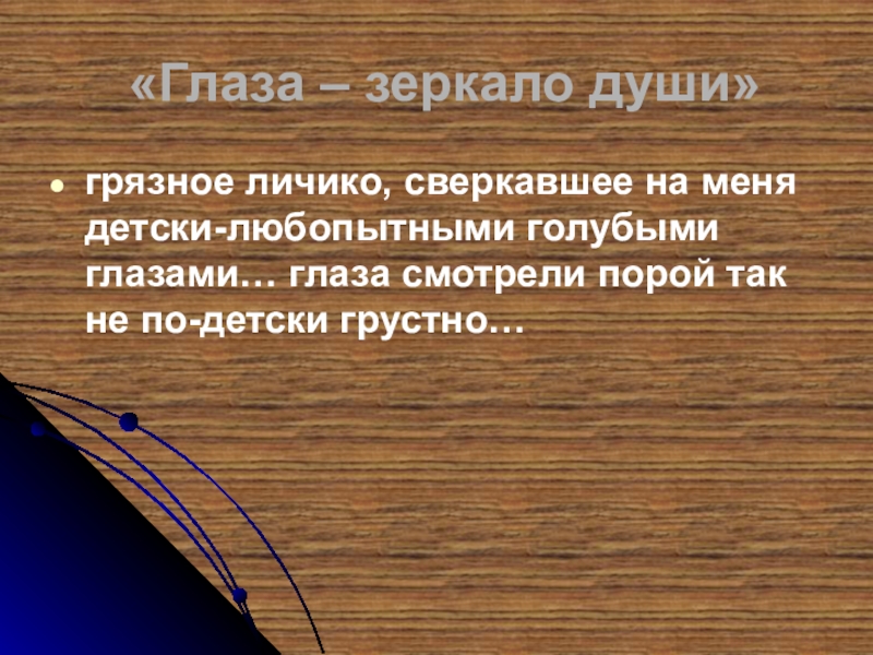 «Глаза – зеркало души» грязное личико, сверкавшее на меня детски-любопытными голубыми глазами… глаза смотрели порой так не