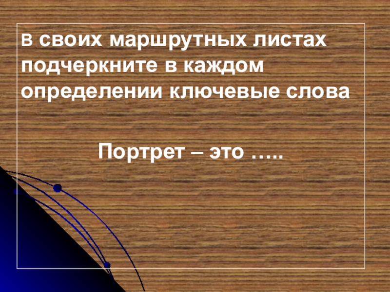 В своих маршрутных листах подчеркните в каждом определении ключевые словаПортрет – это …..