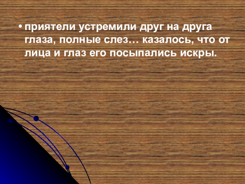 Слайд 17приятели устремили друг на друга глаза, полные слез… казалось, что от