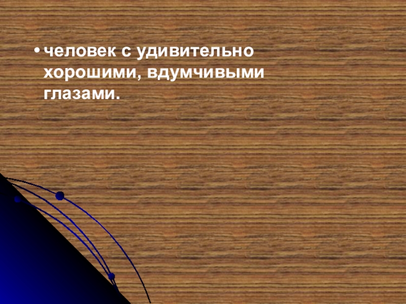 Слайд 16человек с удивительно хорошими, вдумчивыми глазами.