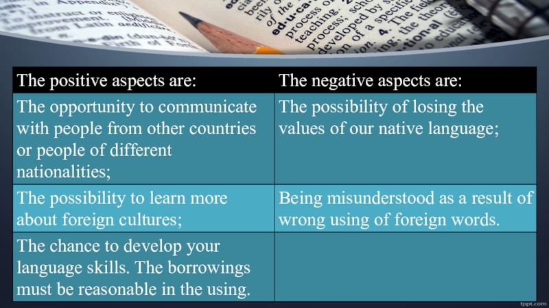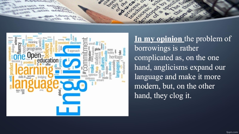 Слайд 12In my opinion the problem of borrowings is rather complicated as,