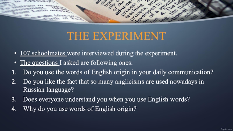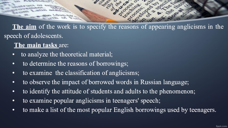 Презентация, доклад к исследовательской работе Англицизмы в молодежной среде
