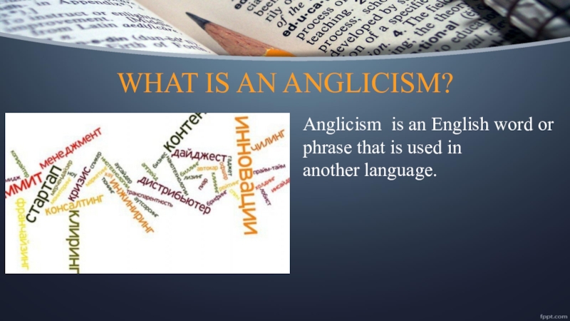 WHAT IS AN ANGLICISM?Anglicism is an English word or phrase that is used in another language.