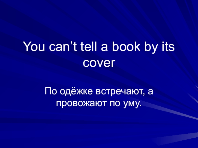 You can’t tell a book by its cover По одёжке встречают, а провожают по уму.