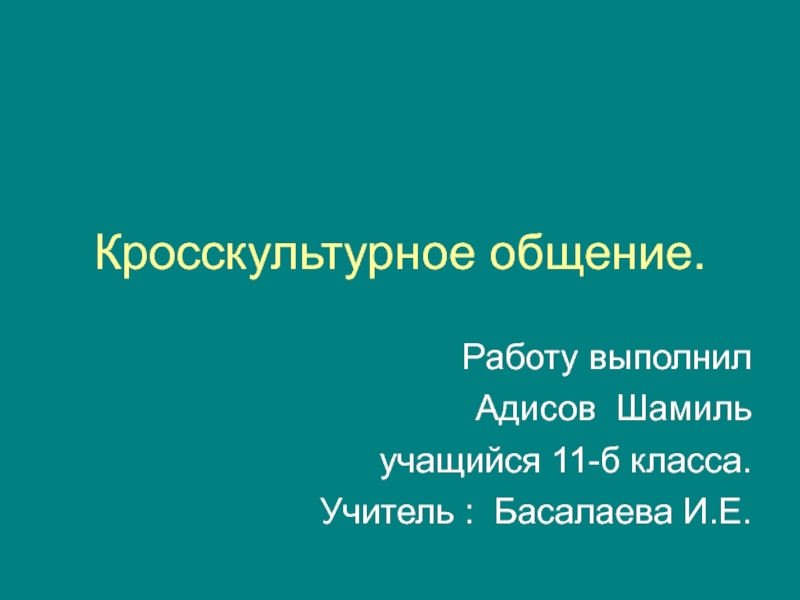 Кросскультурное общение.Работу выполнилАдисов Шамильучащийся 11-б класса.Учитель : Басалаева И.Е.