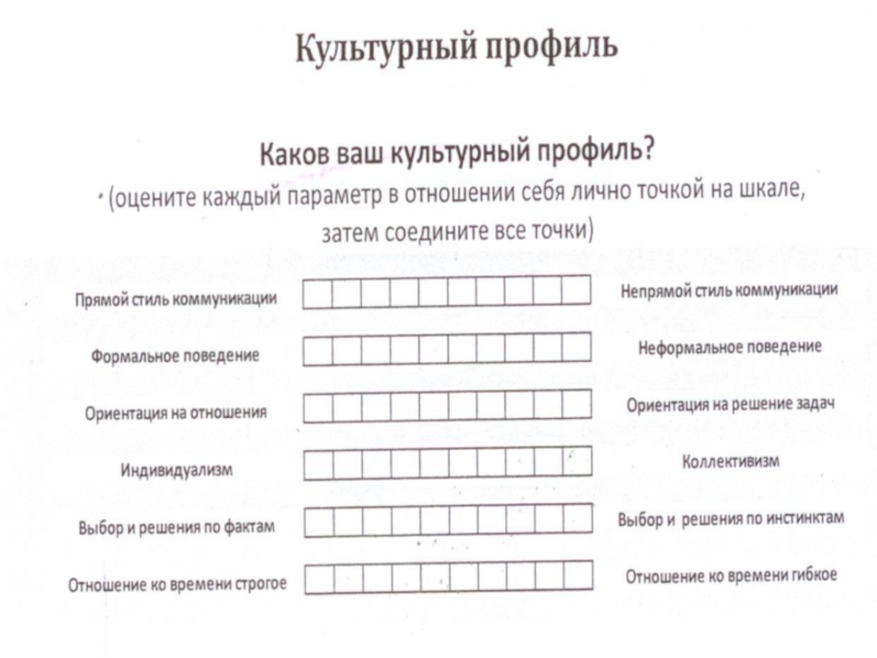 культур и уметь определять свой культурный профиль и своего собеседника.