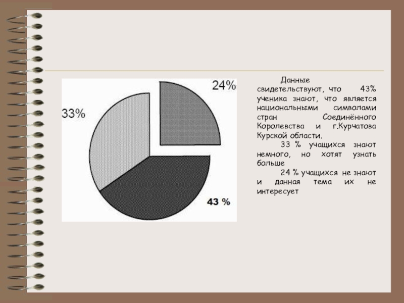 Данные свидетельствуют, что 43% ученика знают, что является национальными