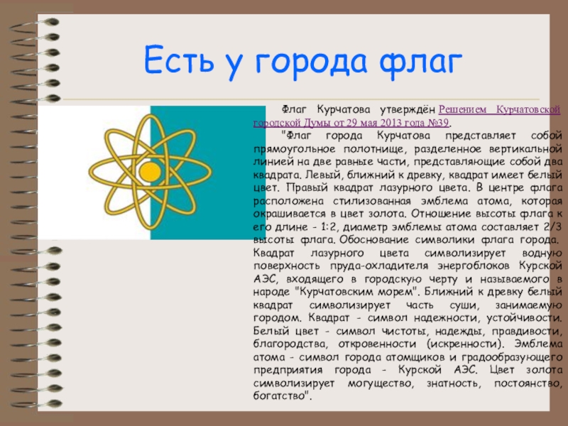 Флаг Курчатова утверждён Решением Курчатовской городской Думы от 29