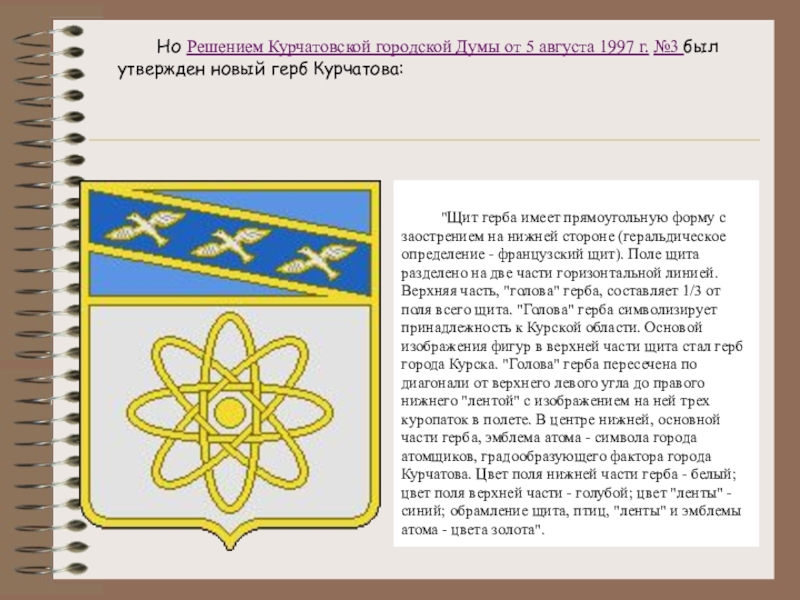 Слайд 27Но Решением Курчатовской городской Думы от 5 августа 1997 г. №3 был