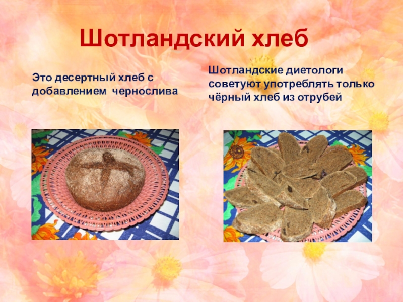 Пирог с яблоками или абрикосовым джемом со стаканом холодного молока — излюбленная утренняя еда. В наше время в связи с модой на здоровую пищу на завтрак нередко едят мюсли — размельченные пшеничные зерна (хлопья), перемешанные с сухофруктами.