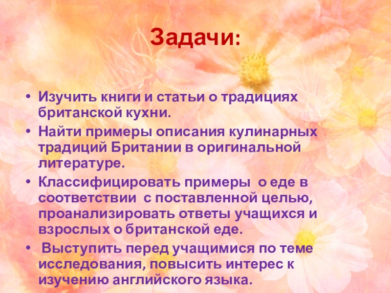 Выступить перед учащимися по теме исследования, повысить интерес к изучению английского языка.