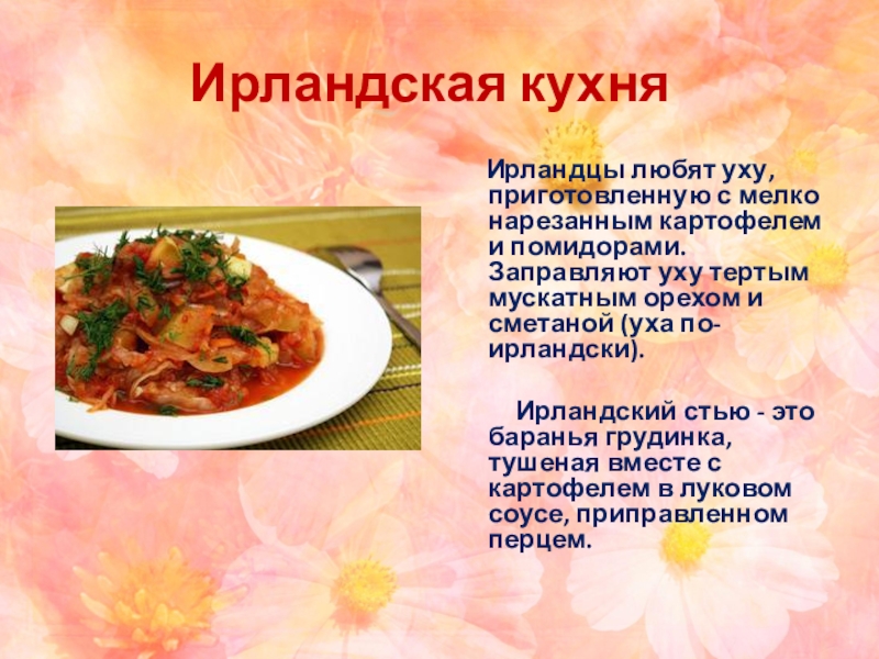 Ирландцы любят уху, приготовленную с мелко нарезанным