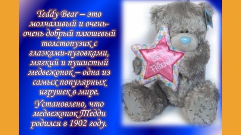 Презентация, доклад к ИССЛЕДОВАТЕЛЬСКОЙ РАБОТЕ ПО АНГЛИЙСКОМУ ЯЗЫКУ Тедди, откуда ты родом?