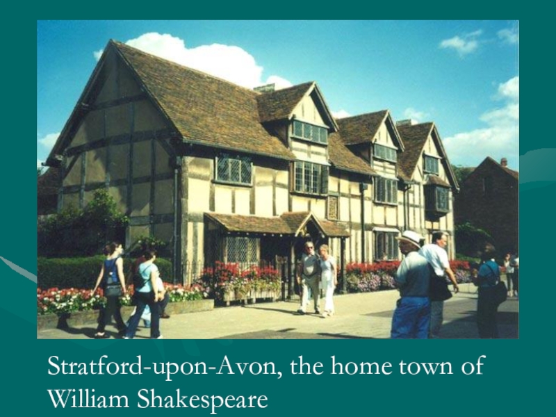 Слайд 8Stratford-upon-Avon, the home town of William Shakespeare