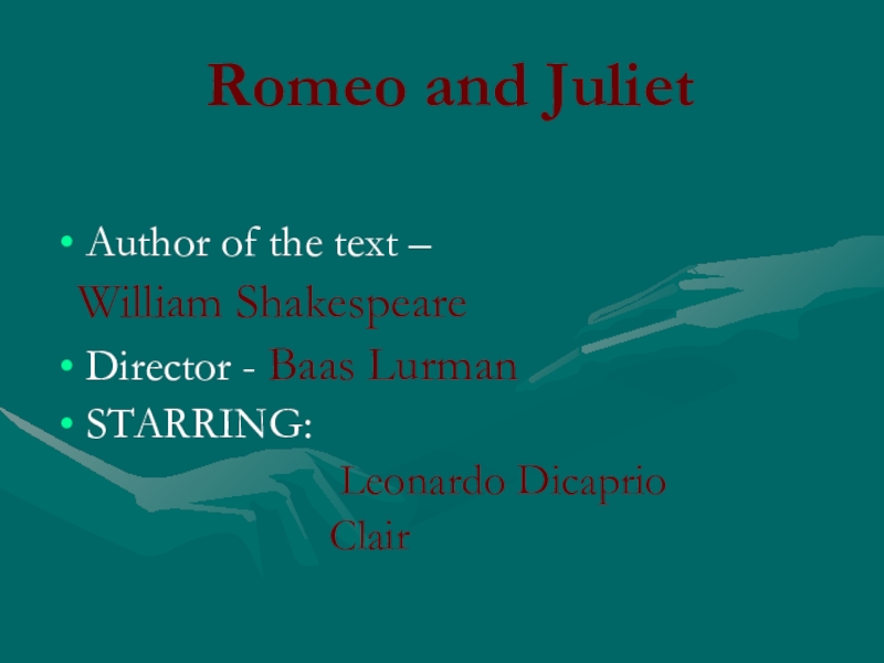 Romeo and JulietAuthor of the text –  William ShakespeareDirector - Baas Lurman STARRING:
