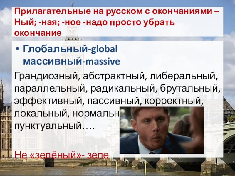Слайд 17Прилагательные на русском с окончаниями –Ный; -ная; -ное -надо просто убрать