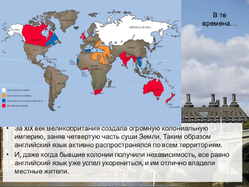 четвертую часть суши Земли. Таким образом английский язык активно распространялся по всем территориям.