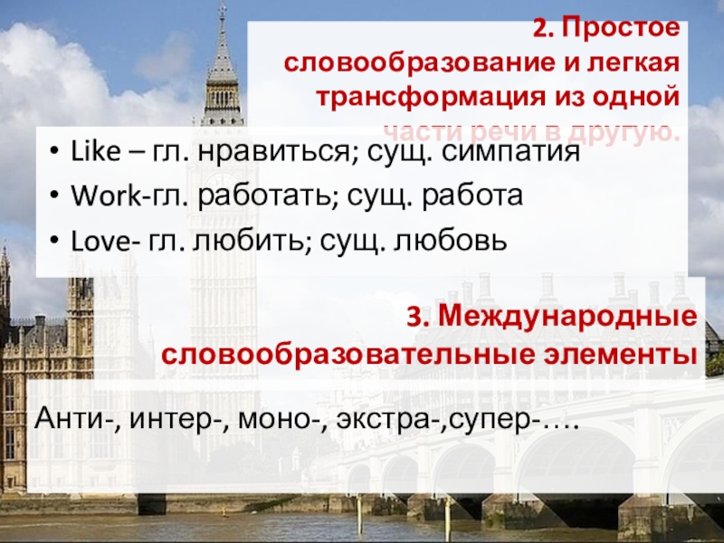 Слайд 112. Простое словообразование и легкая трансформация из одной части речи в