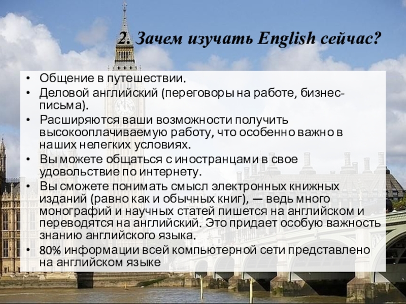 Вы сможете понимать смысл электронных книжных изданий (равно как и обычных книг), — ведь много монографий и научных статей пишется на английском и переводятся на английский. Это придает особую важность знанию английского языка.