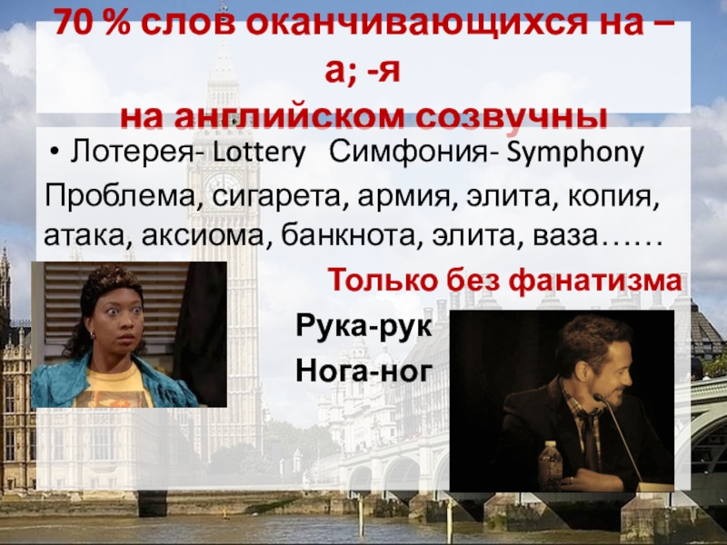 Слайд 1670 % слов оканчивающихся на –а; -я