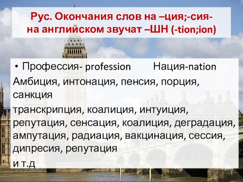 транскрипция, коалиция, интуиция, репутация, сенсация, коалиция, деградация, ампутация, радиация, вакцинация, сессия, дипресия, репутация