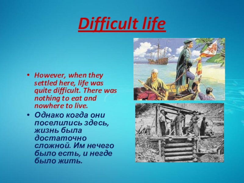 Однако когда они поселились здесь, жизнь была достаточно сложной. Им нечего было есть, и негде было жить.