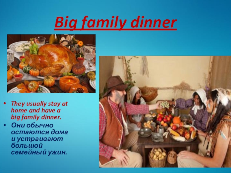 Они обычно остаются дома и устраивают большой семейный ужин.