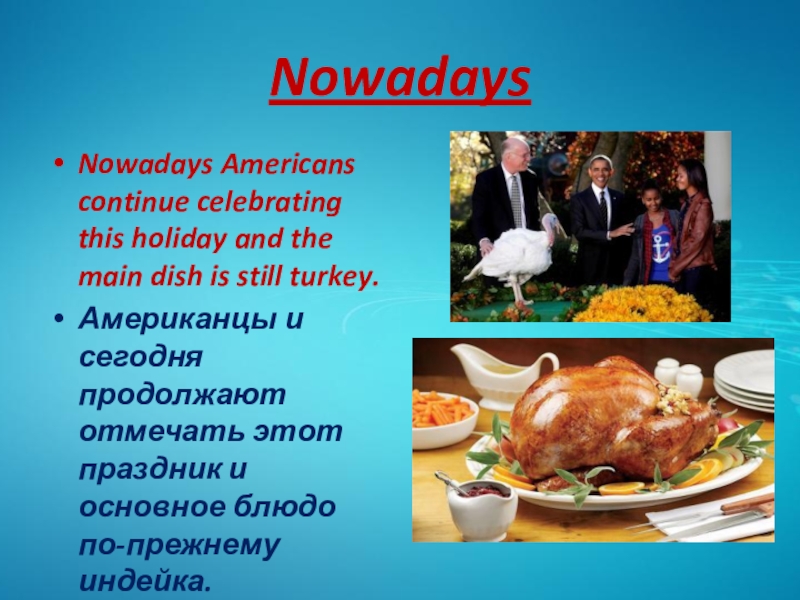 Nowadays Americans continue celebrating this holiday and the main dish is