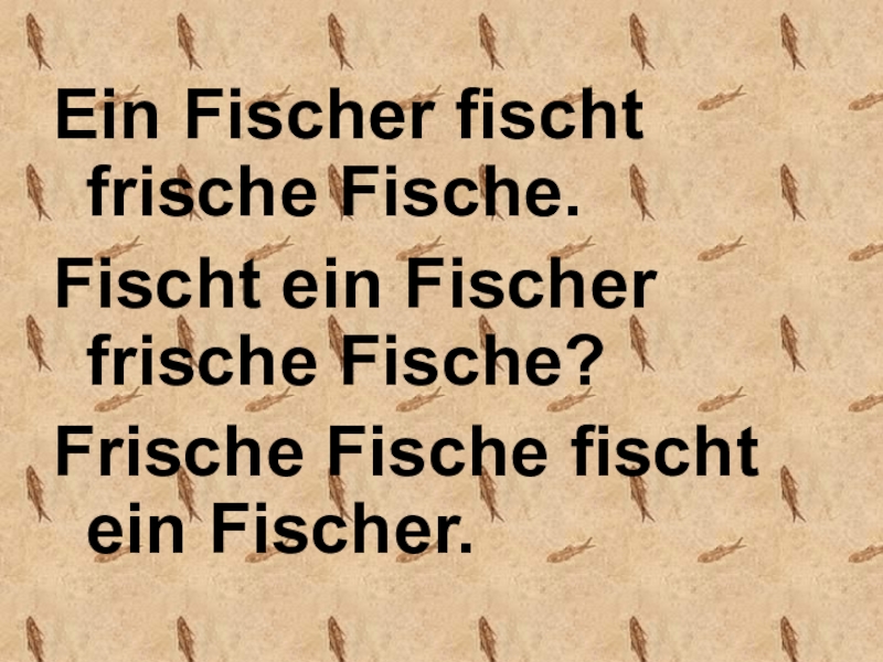Ein Fischer fischt frische Fische.Fischt ein Fischer frische Fische?Frische Fische fischt ein Fischer.