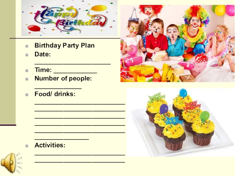 Слайд 12Birthday Party Plan