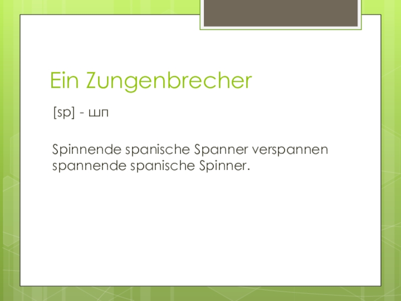 Ein Zungenbrecher[sp] - шпSpinnende spanische Spanner verspannen spannende spanische Spinner.