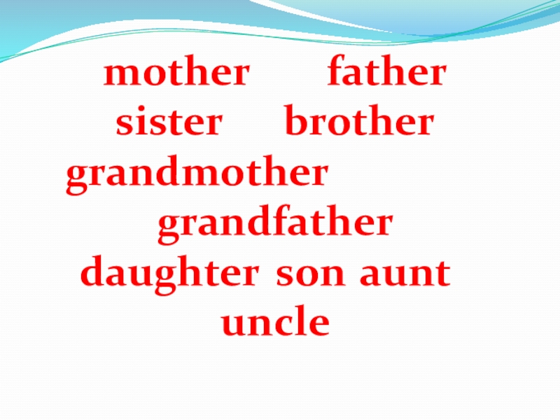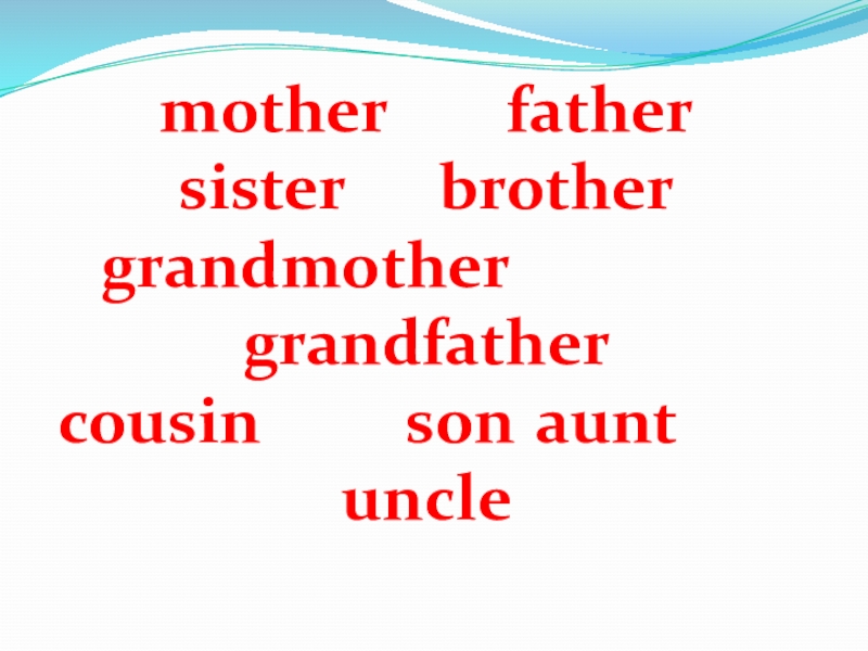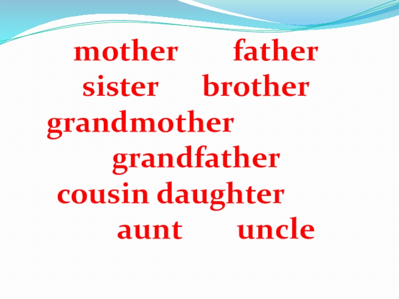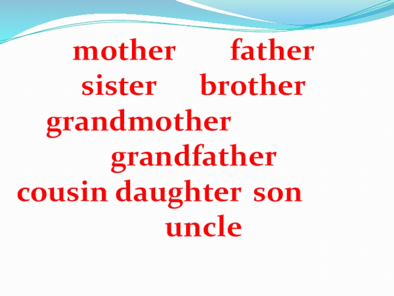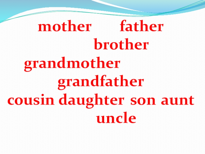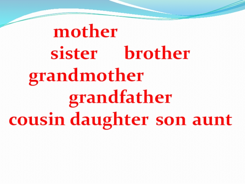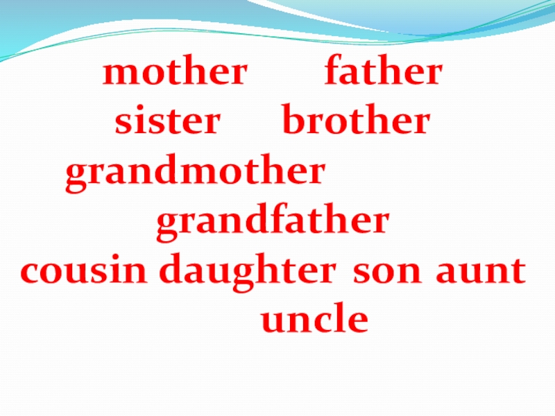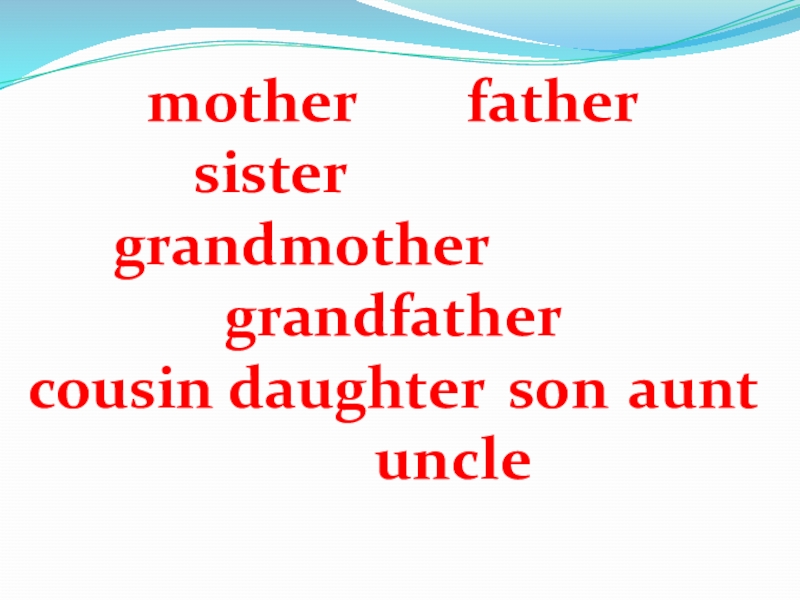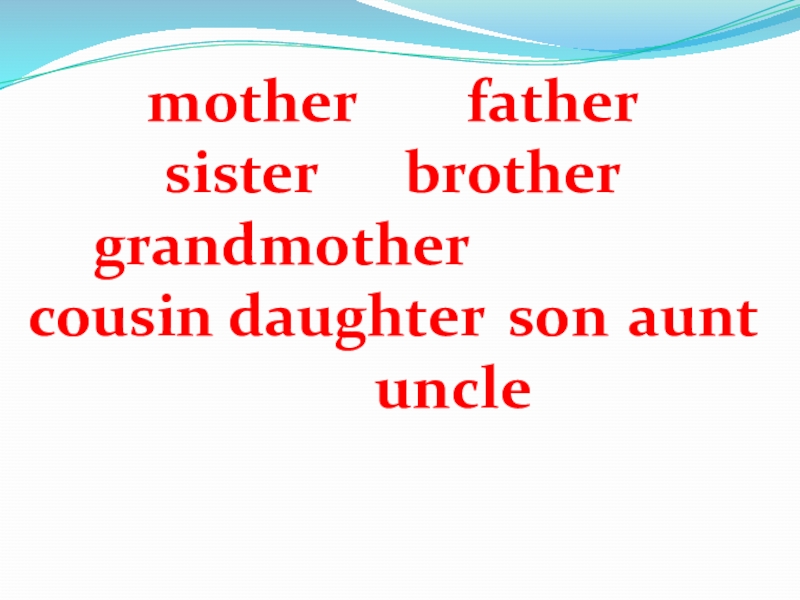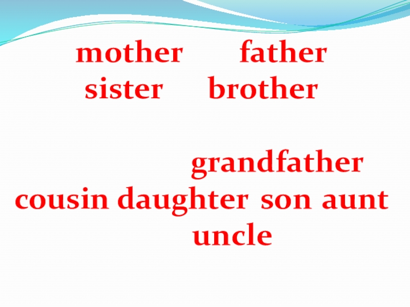 Слайд 8mother father sister grandmother grandfather cousin daughter son aunt uncle