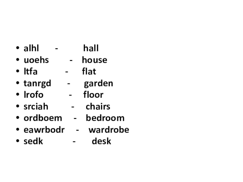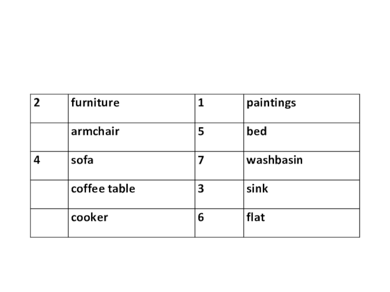 Слайд 5lamp, bath, table, carpet, wardrobe, fridge, window, mirror.